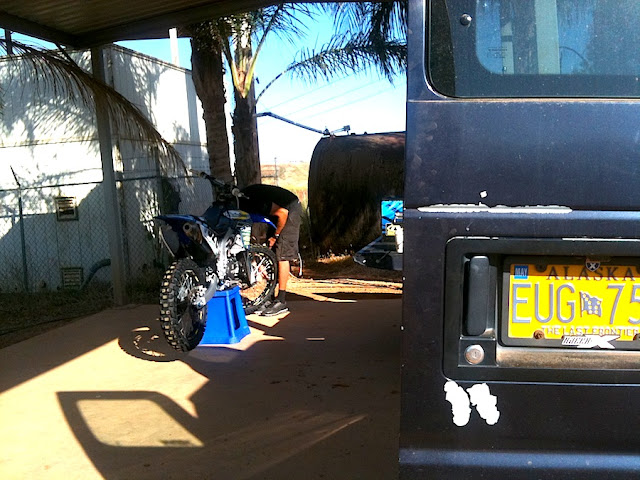 10:45am: I am on my way to Glen Helen to go test in MX with Kyle Chisholm. Somebody was testing on the Kawi track when I drove by...~